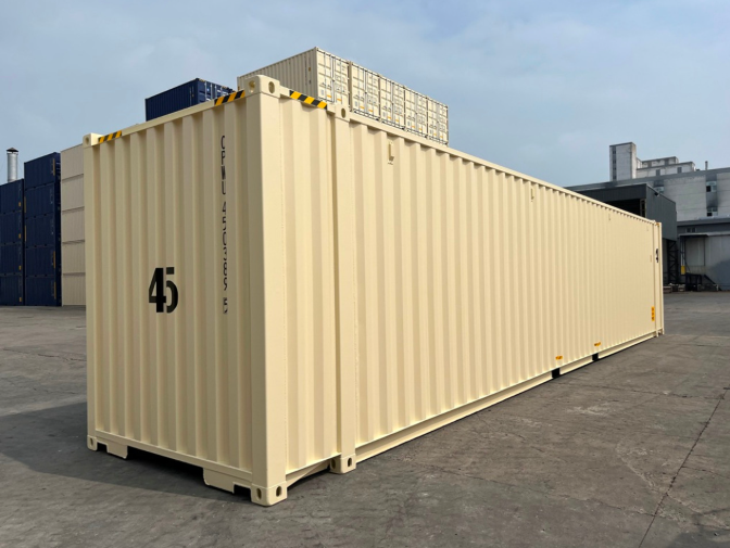 The 45ft High Cube New ‘One-Trip’ Shipping Container is a compact and durable solution for businesses and individuals needing efficient storage and transport options. Its high cube design provides extra height in a small footprint, maximizing storage space in limited areas.